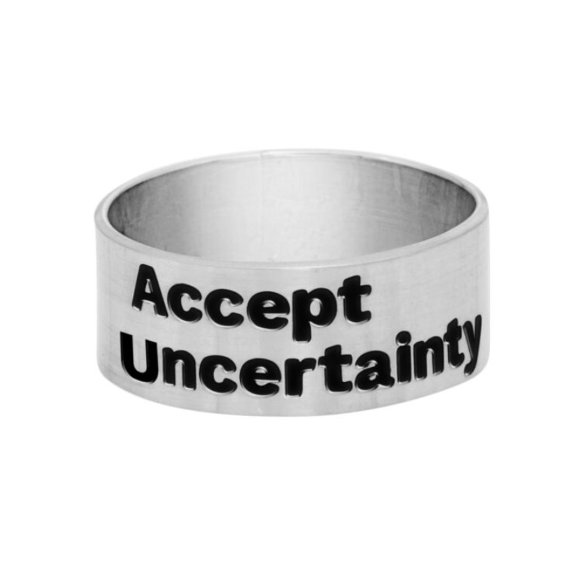 טבעת כסף עבה,שמזכירה לנו את אי הוודאות בכל רגע ורגע, אם נדע לזכור, להבין ולהרגיש את זה, נחייה חיים מלאים ושלווים יותר.