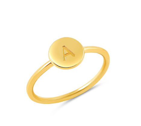 טבעת יפה, קלאסית ועדינה מותאמת לגודל שלך, על גבי העיגול ניתן לחרוט אות לבחירה