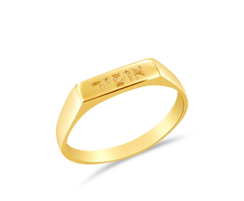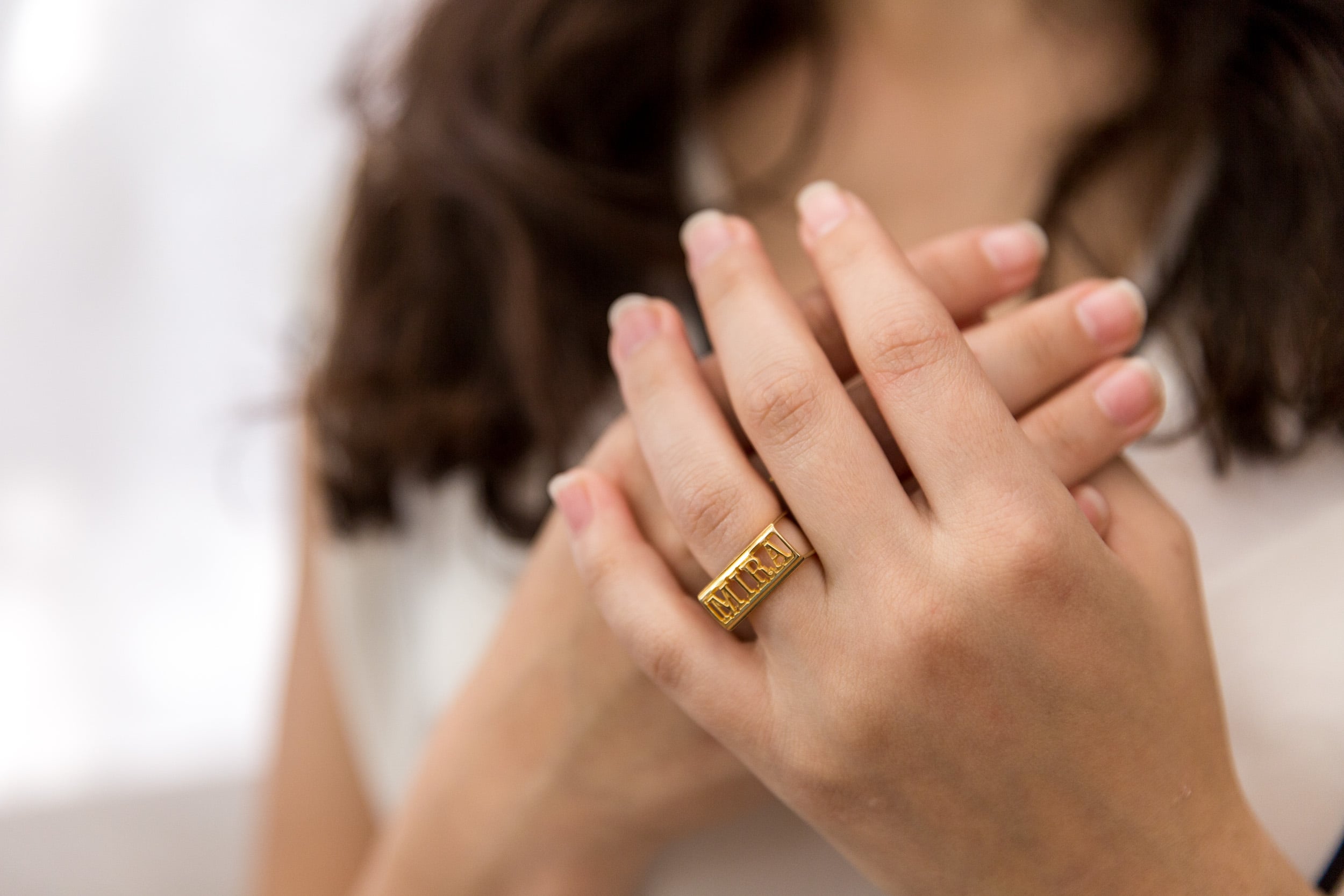 הטבעת עשויה פליז מצופה זהב 14K בעובי 2 מיקרון. ניתן להזמין גם בכסף 925
