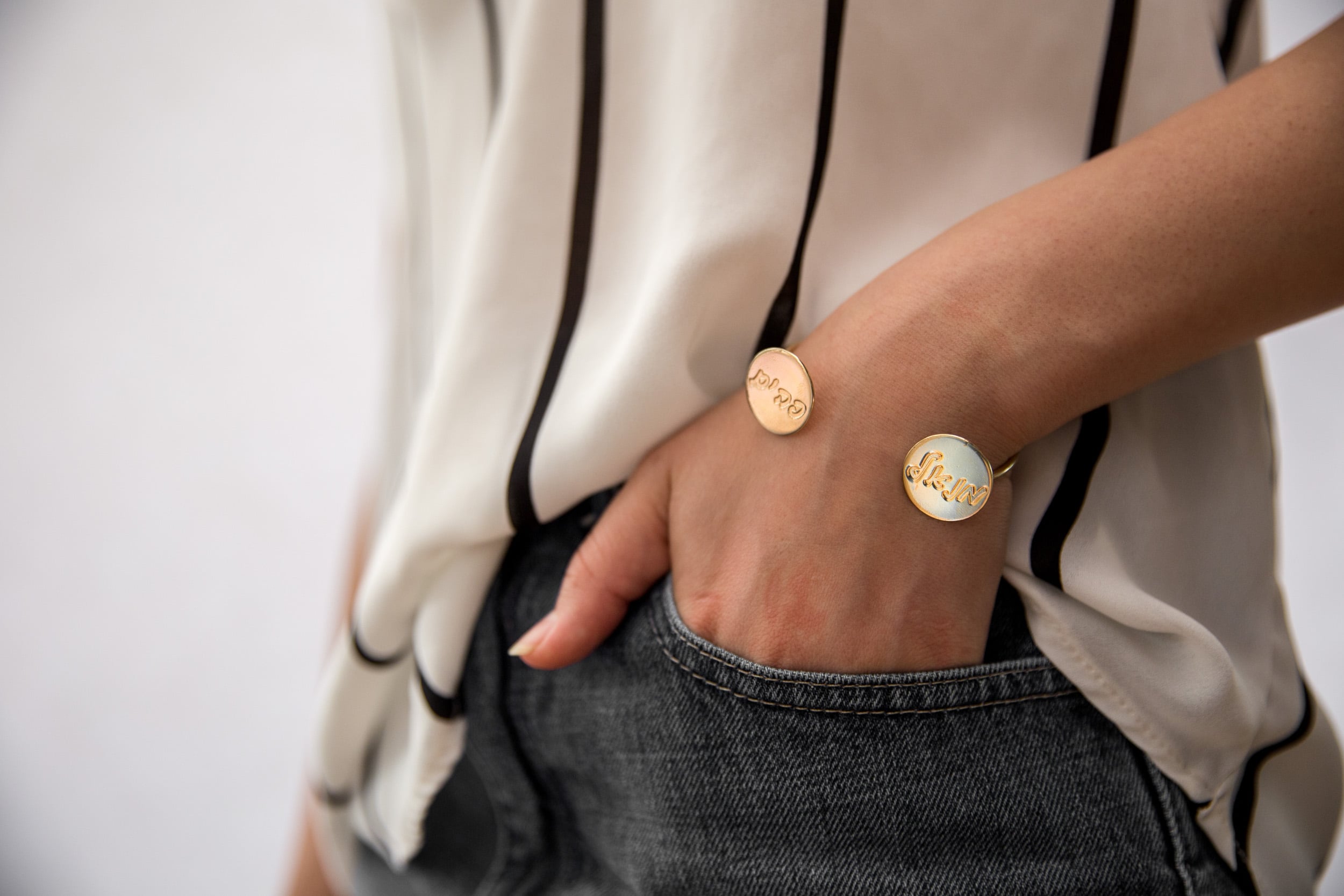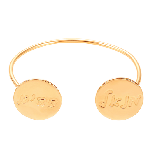 צמיד יפה ומיוחד עם שני עיגולים ועליהם חרוט שני שמות לבחירה