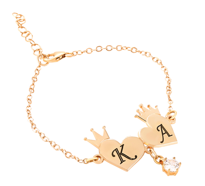 צמיד שני לבבות עם כתרים וחריטה עמוקה