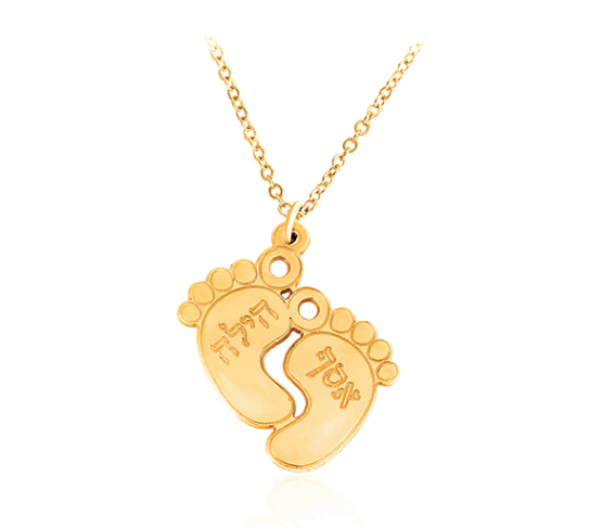 גאוות האימהות עם כל האהבה שאפשר, רגלי תינוק קטנות ומוזהבות עם חריטת השם של ילדייך עשויה פליז מצופה זהב 14 קראט