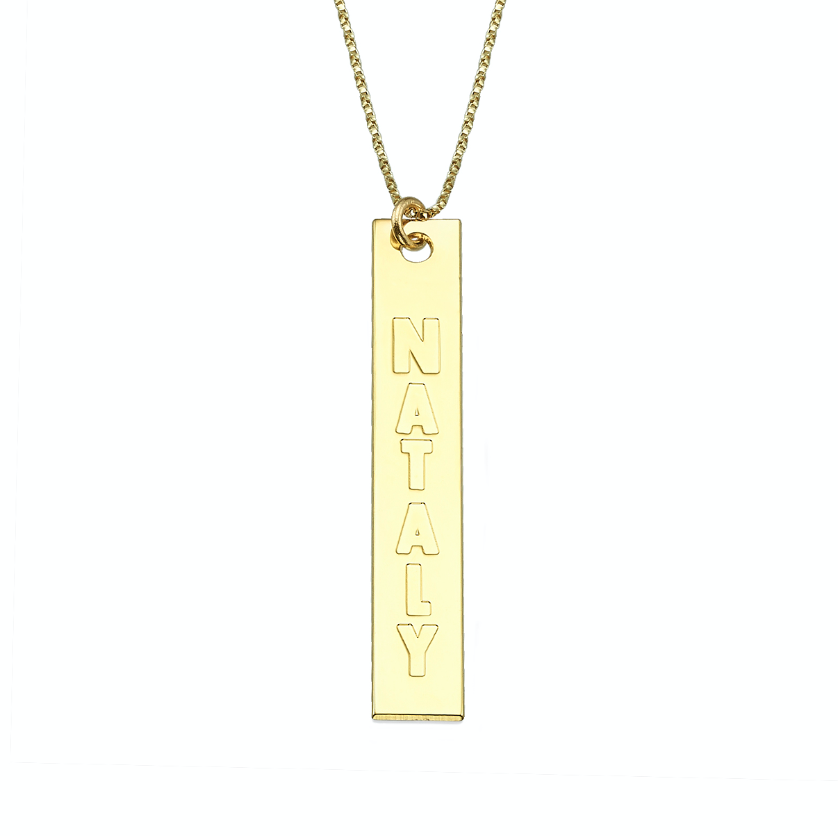 שרשרת בר לאורך עם כיתוב של שם באותיות גדולות בלבד עד 6 אותיות.
