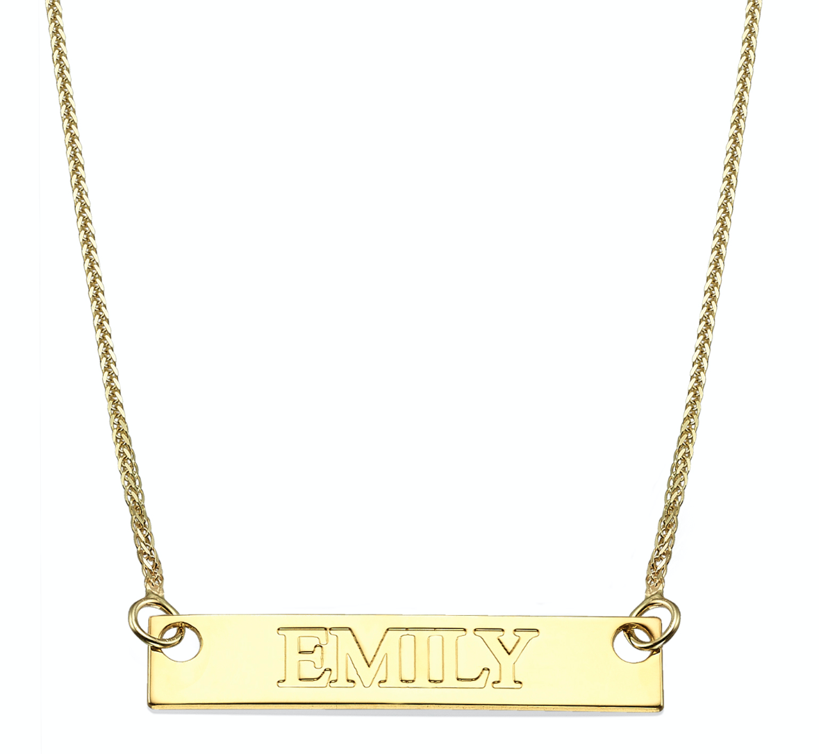 שרשרת בר לרוחב עם חריטת שם. זהב 14K
