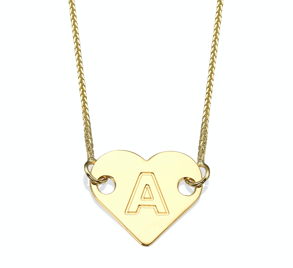 שרשרת זהב 14K עם תליון לב ועליו חריטת אות אחת לבחירה