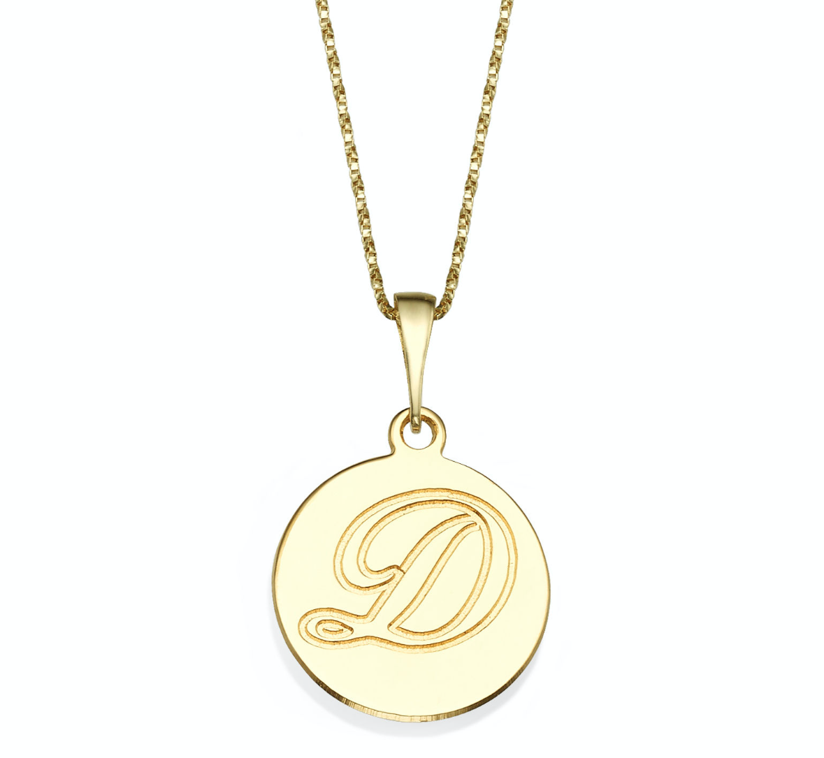 שרשרת זהב 14K תליון עגול עם חריטת אות אחת