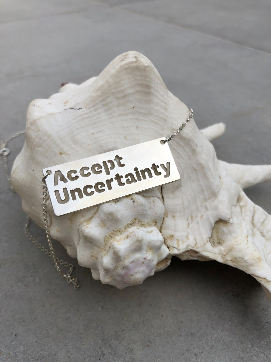 שרשרת כסף עם פלטה מלבנית, מלאה, עוצמתית, בעלת נוכחות עם הכיתוב מחורר בתוכה.