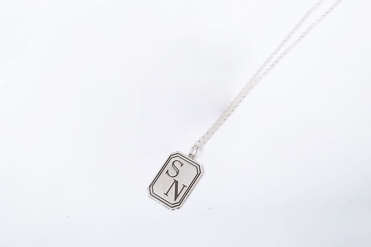 שרשרת כסף מלבנית עם שתי אותיות בהתאמה אישית – תכשיט מושלם שמשלב בין עיצוב מודרני ומשמעות אישית עמוקה. העיצוב המלבני הנקי, יחד עם בחירת שתי האותיות, יוצר פריט ייחודי שמספר את הסיפור שלכם בצורה אלגנטית ומרשימה.