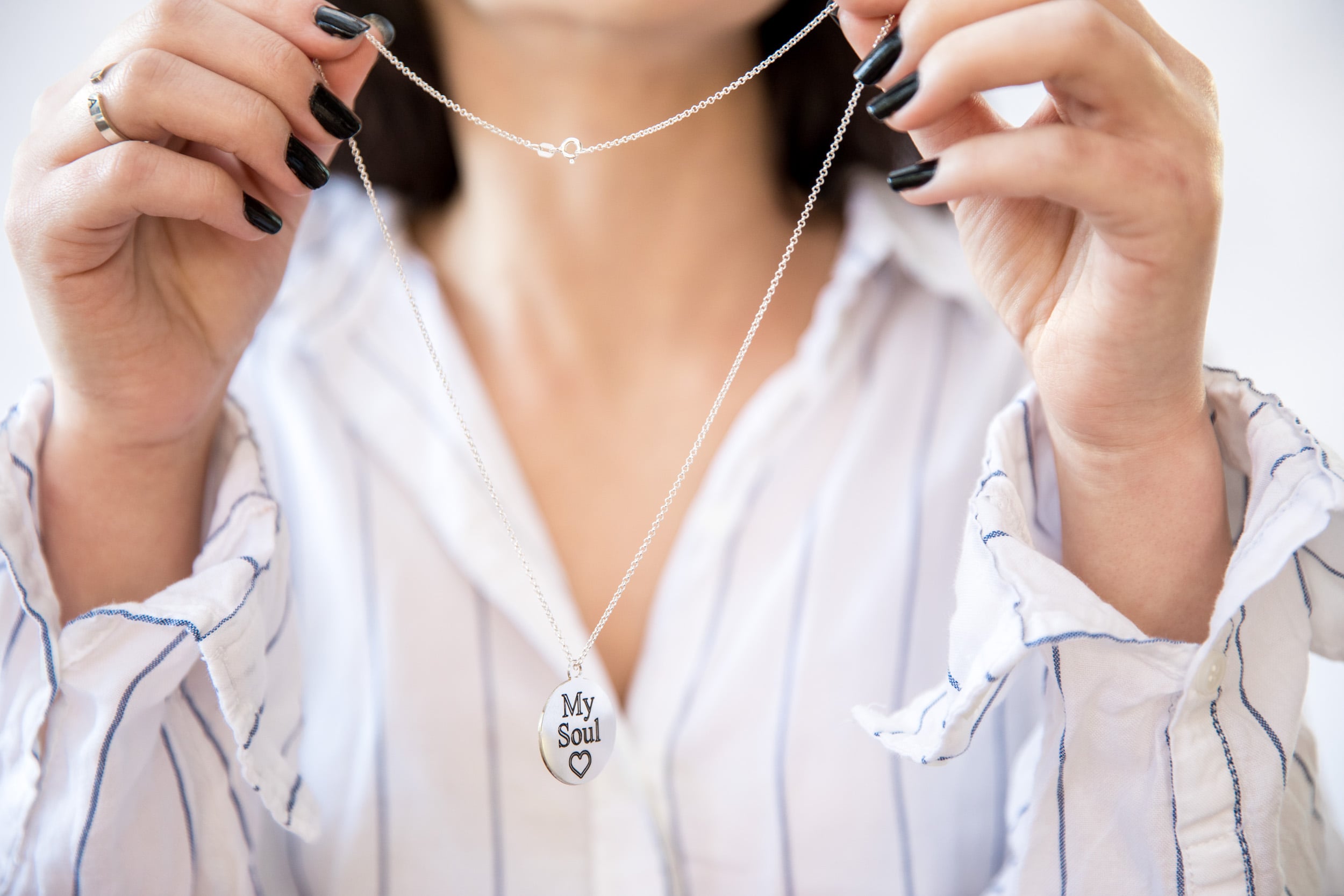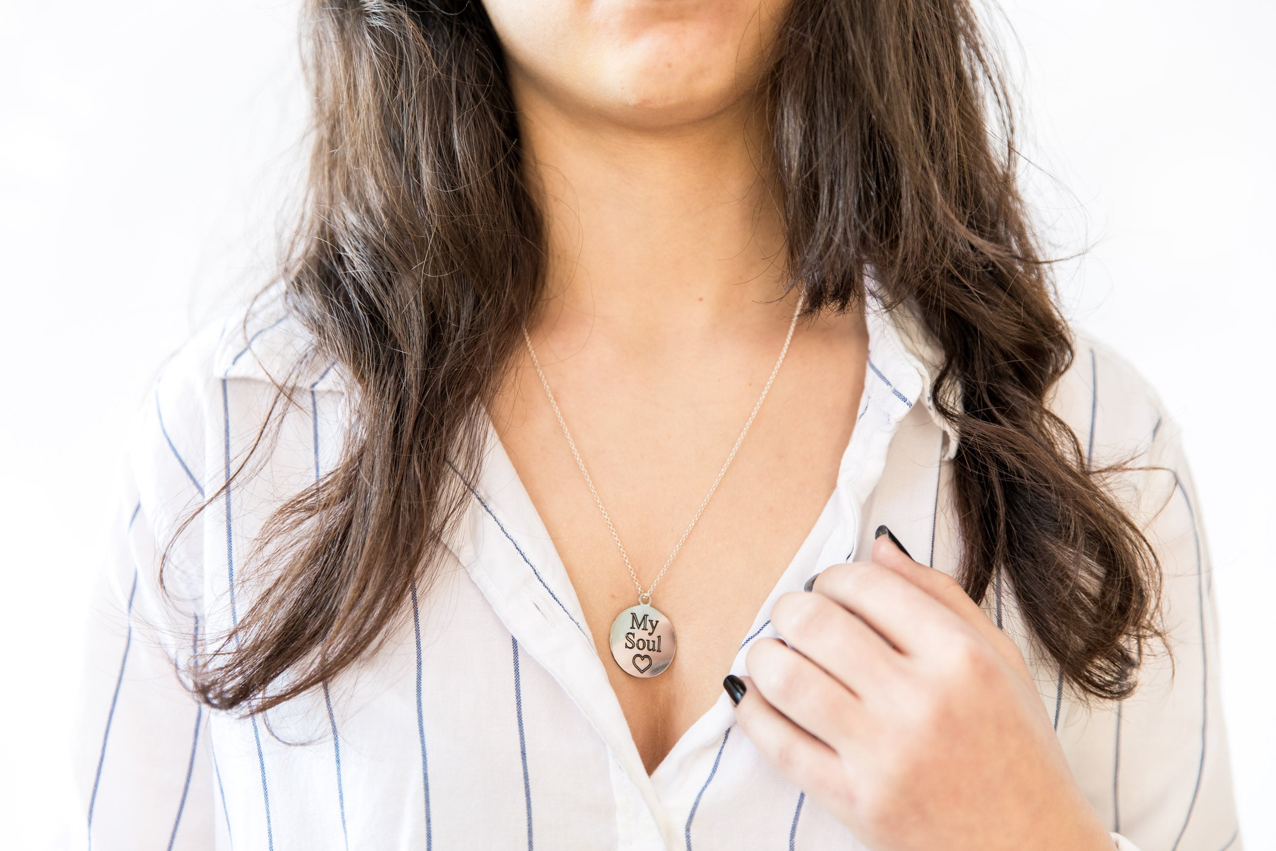שרשרת עיגול עם כיתוב מכסף אמיתי