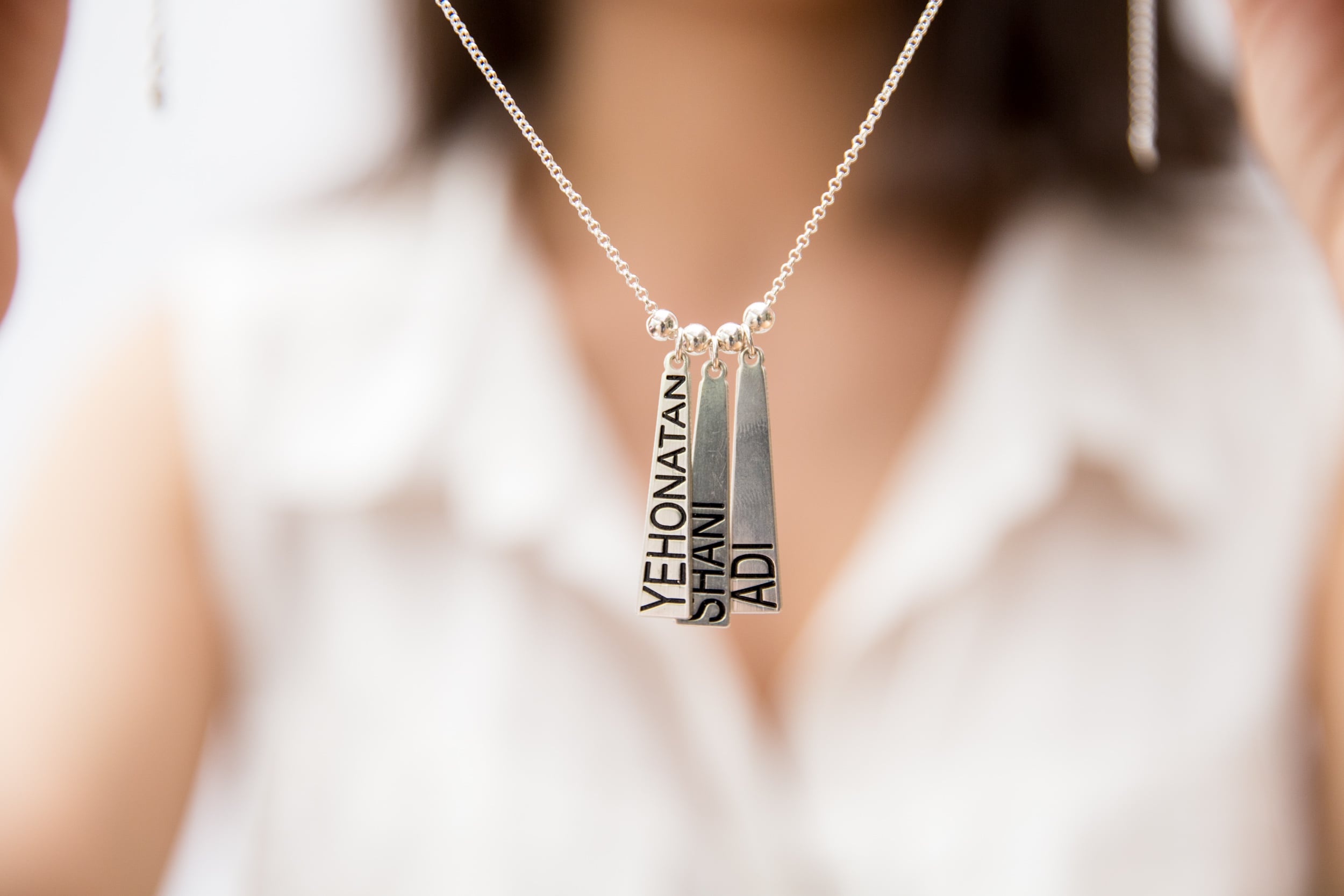שרשרת מיוחדת עשויה כסף 925, עדינה, יפה, שכל אחד מהמלבנים שונה מקודמו במילה או אות לשיקולכם. ניתן להזמין גם בציפוי זהב עובי 2 מיקרון. מלבן אחד מחיר 135 ש"ח – שני מלבנים מחיר 185 ש"ח – שלושה מלבנים 235 ש"ח. כל מלבן נוסף 50 ש"ח