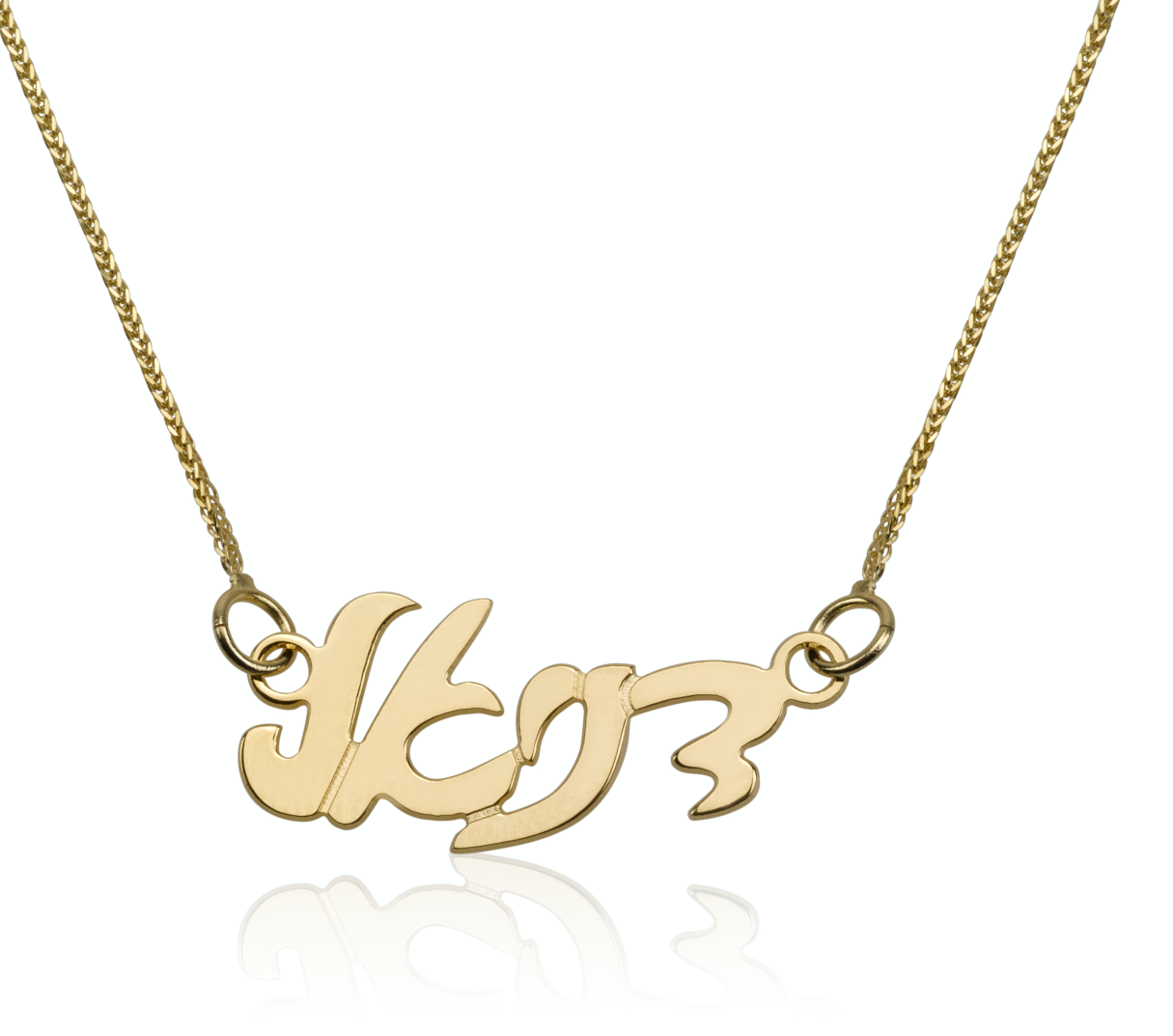 שרשרת זהב 14K עם שני מלבנים לאורך עם שני שמות