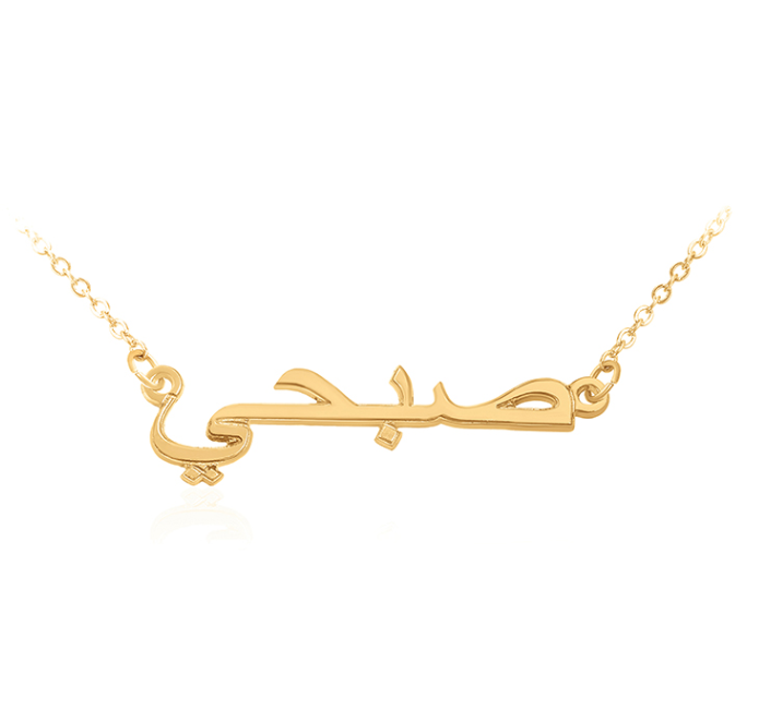 שרשרת שם בעיצוב כתב ערבי – תכשיט אלגנטי ומיוחד שמביא איתו נגיעה של תרבות, אומנות ויופי אישי.
