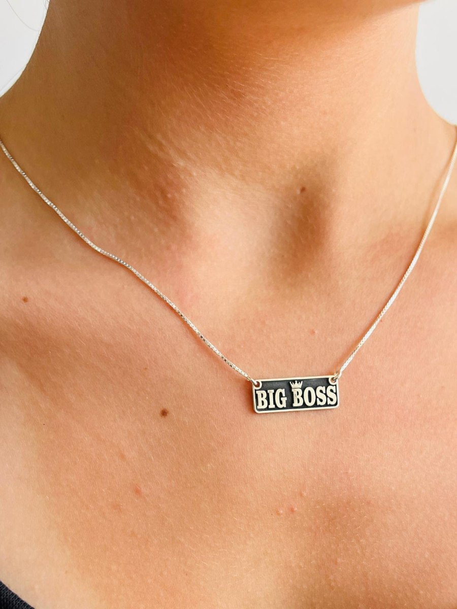 שרשרת עשויה כסף אמיתי עם תליון מלבני בגודל 22×8 מ"מ ובעובי 1 מ"מ, שעליו חרוט הכיתוב BIG BOSS – הצהרה ברורה של מי אתה.את בעולם.