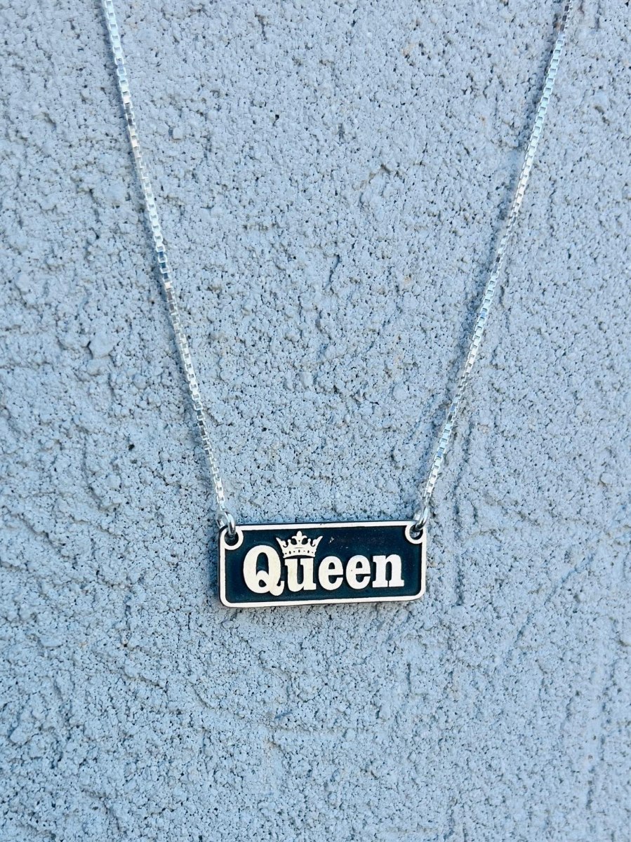 שרשרת עשויה כסף אמיתי עם תליון מלבני בגודל 22×8 מ"מ ובעובי 1 מ"מ, שעליו חרוטה המילה QUEEN – כי את לא רק אחת מני רבות. את אחת ויחידה.
