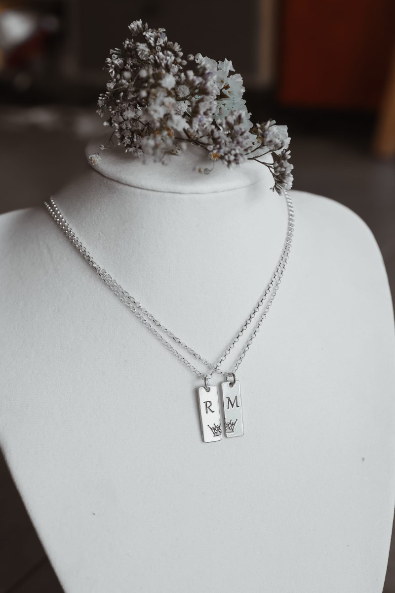 גלו את השילוב המושלם של עיצוב ומשמעות עם שתי השרשראות המלבניות הייחודיות, המעוטרות בכתר חצוי. העיצוב המשלב את שני חלקי הכתר מסמל קשר עמוק, שותפות וחיבור בין אנשים או רגעים מיוחדים בחיים. השרשראות עשויות מחומרים איכותיים ועמידים, בעבודת יד מוקפדת, ומציעות מראה יוקרתי שמתאים לכל סגנון – יומיומי או ערב.